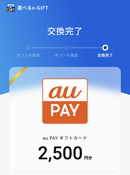 2,500円分のデジタルギフトをもらえました。