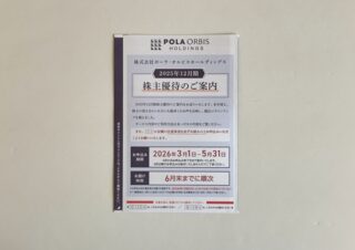 株主優待到着報告 ポーラ・オルビスホールディングス(4927) 株主優待案内 到着 (2025/12分) 2026/03/02にポーラ・オルビスホールディングス(4927)の株主優待案内が到着しました。 株主優待基本情報 権利確定月12月優待内容優待ポイント株価1,293.5円優待獲得最低株数100株優待... 2026.03.18 株主優待到着報告