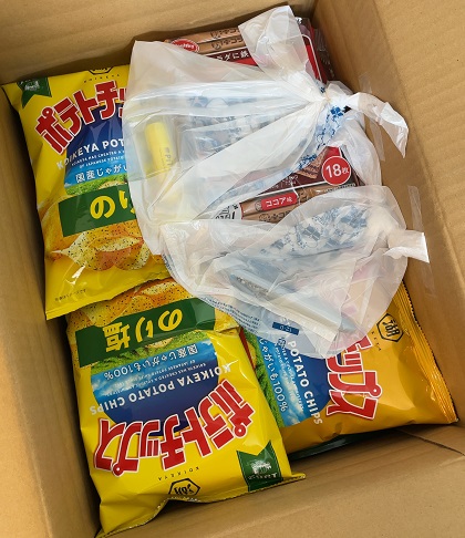 まだ手持ちのスナック菓子がいくつかあるので、今回は控えめに1人2袋にしました。