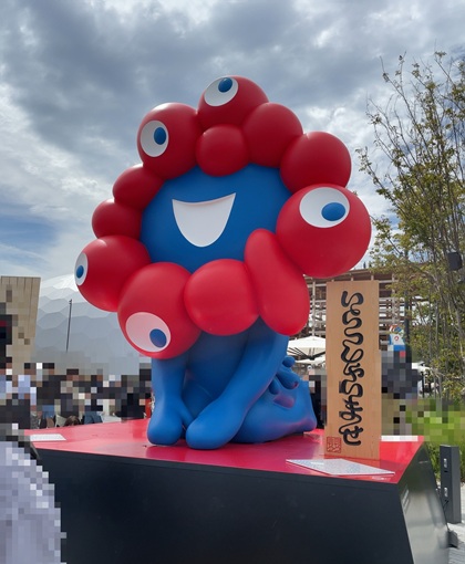 昨日のアイキャッチが「ミャクミャクモニュメント「ワクワク」」、今日のアイキャッチが「EXPO 2025モニュメント」、下の写真が「ミャクミャクモニュメント「いらっしゃい」」。撮れてよかった!