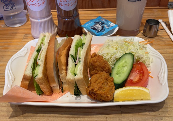 昼コメプレート ハムサンド コメチキ2個付き 740円(※ドリンク注文時)