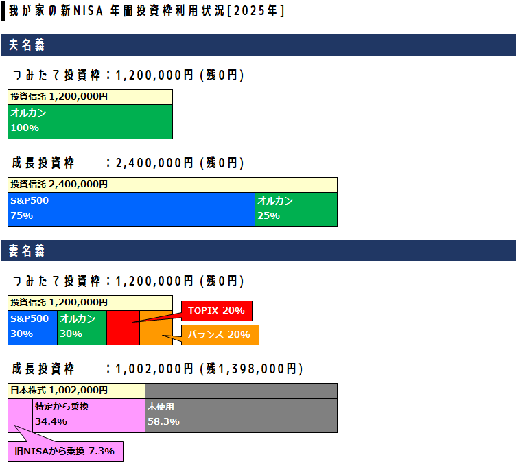 「成長投資枠」の240万円分については、元々保有していた銘柄の、旧NISAや特定口座からの買い直しに使いました。